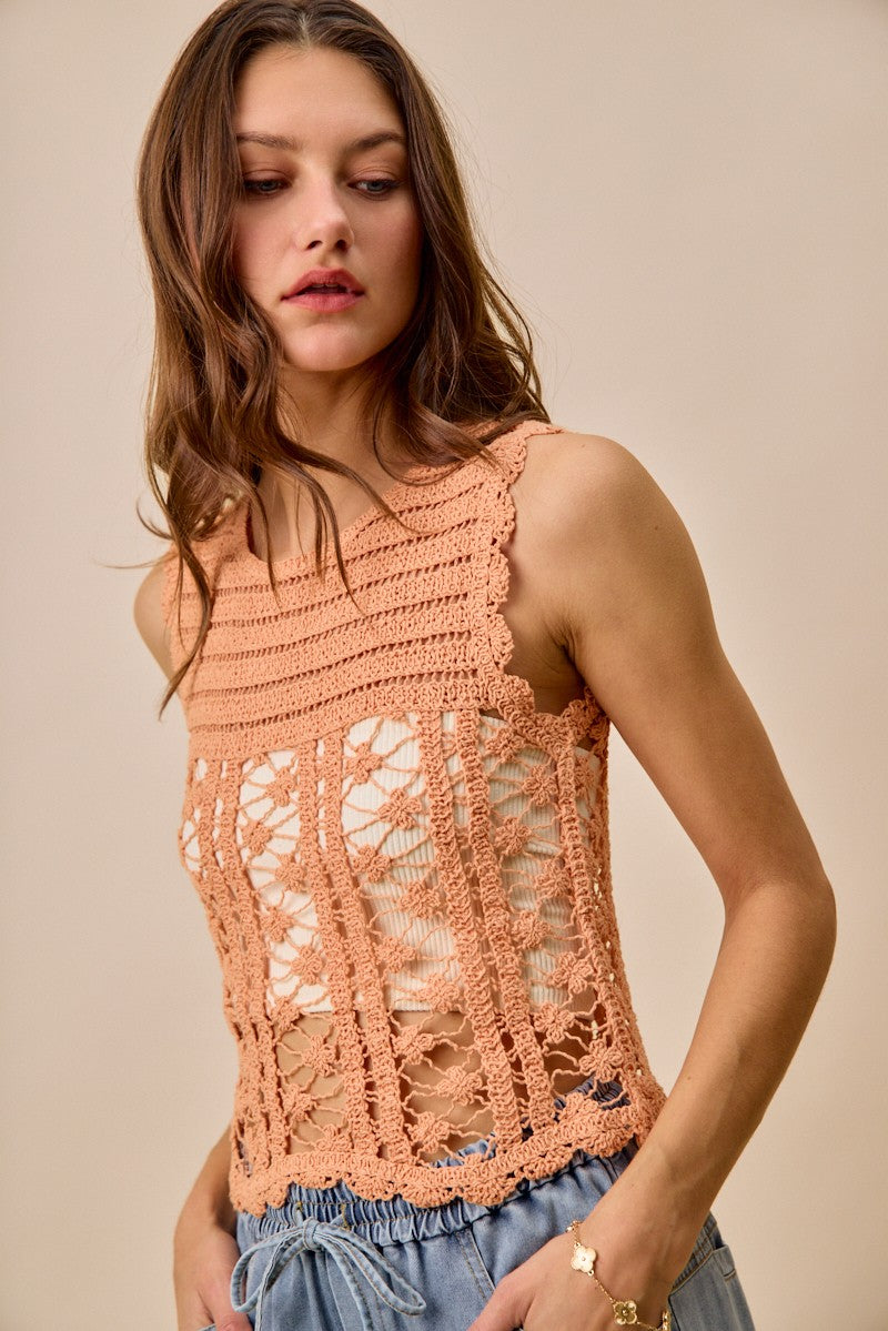 SO ME Crochet Knitted Lace Sweater Tank Top