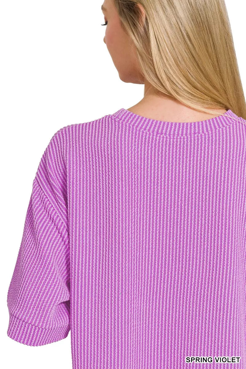 Zenana Raised Rib Short Sleeve Tee and Drawstring Shorts Set