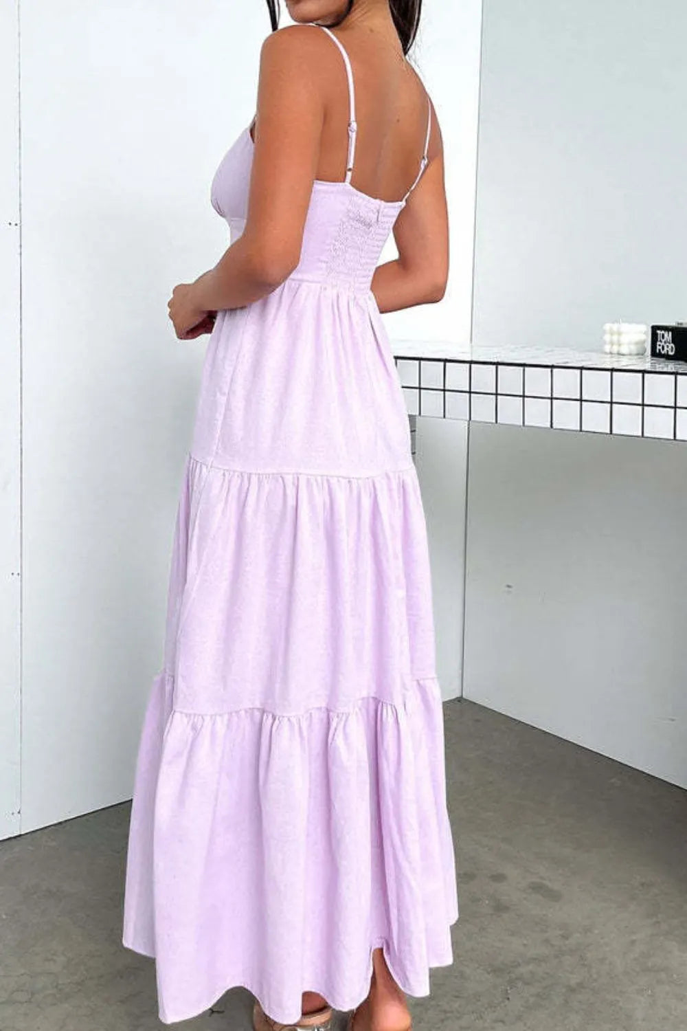 Cut-Out Tiered Dress with Spaghetti Straps
