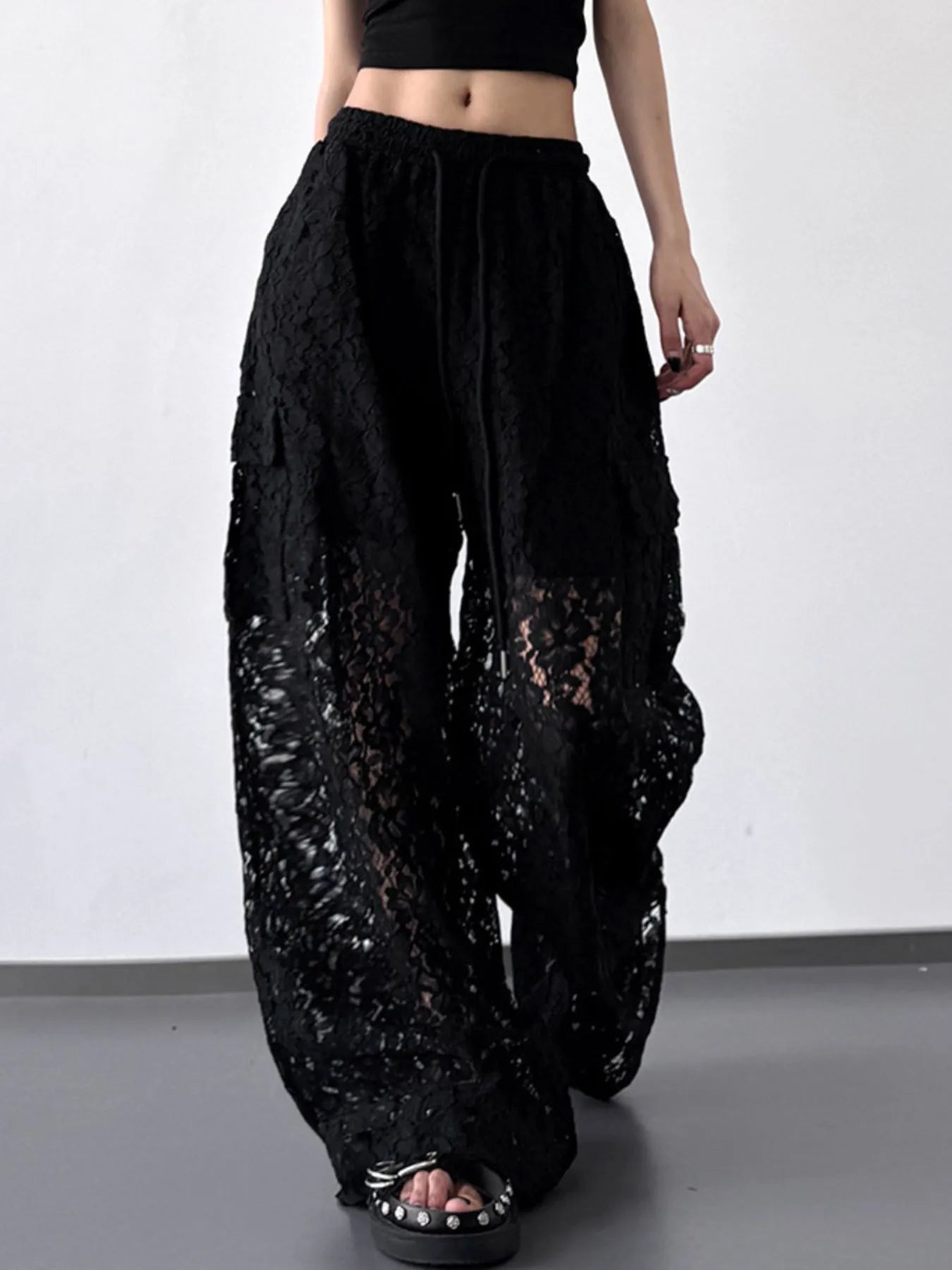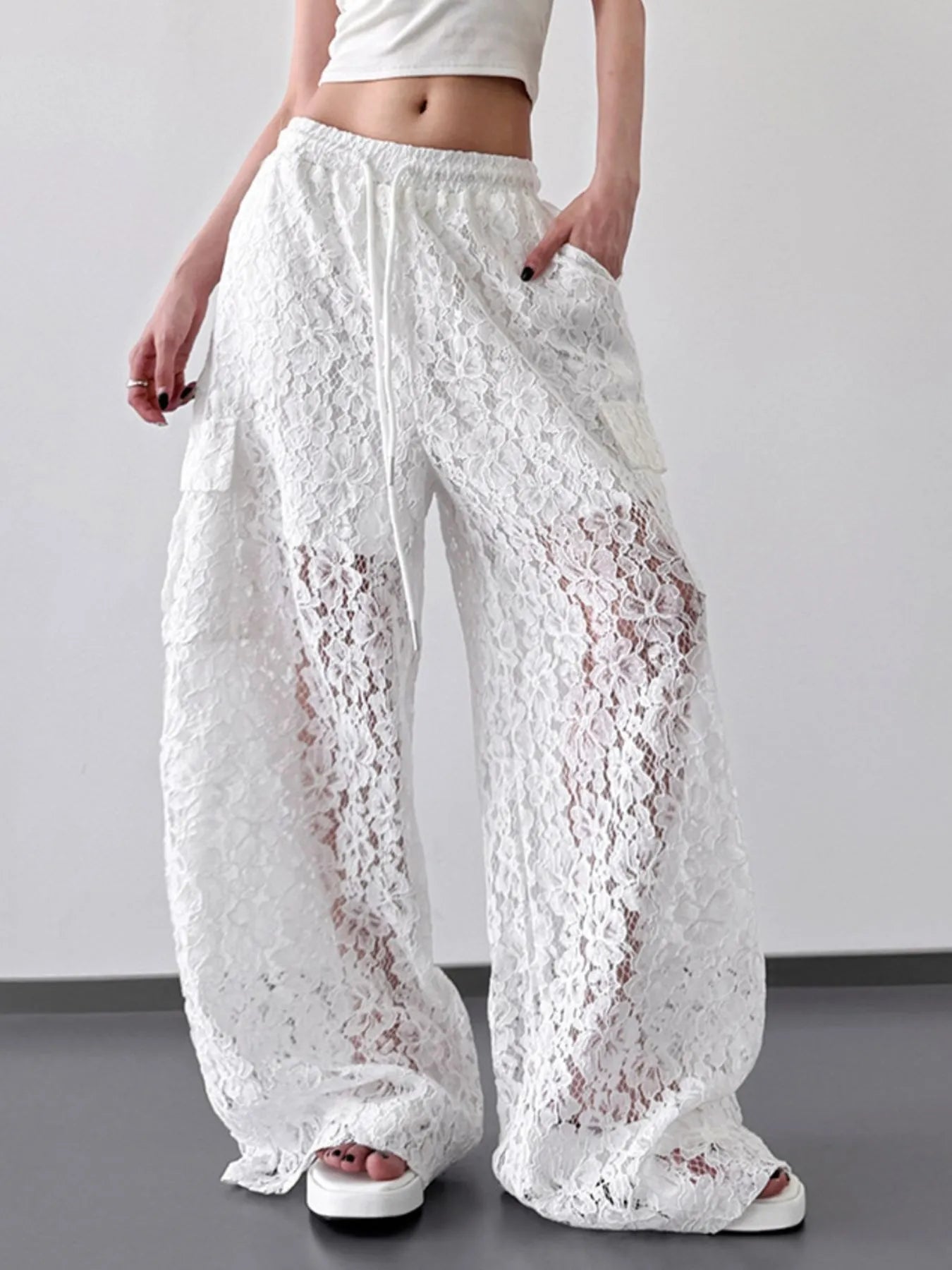 • Features:Lace,Sheer,Pocketed,Drawstring